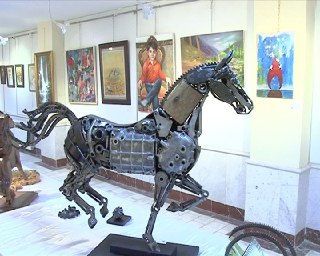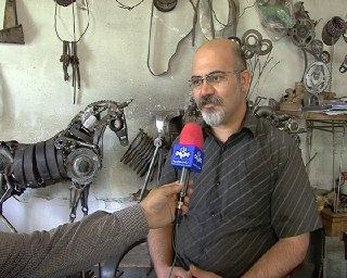 هنرمند خوش ذوق تبریزی از قطعات دورریز خودرو مجسمه های زیبایی خلق می کند .