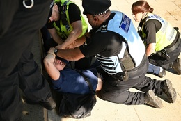 به گزارش خبرگزاری اسوشیتدپرس، تظاهرکنندگان پارچه نوشتههایی با پیامهای ضدنژادی و ضددولتی حمل میکردند.