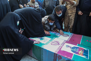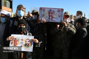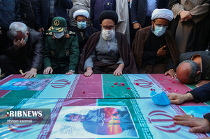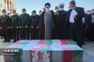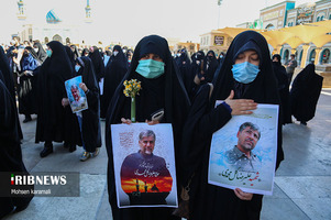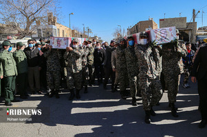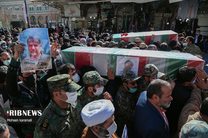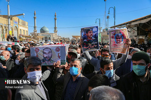 گروه عکس خبرگزاری صداوسیما : پیکرهای شهیدان علیرضا گل محمدی و شهید محمود حاجی قاسمی که در مأموریت جستجوی پیکرهای شهدا به فیض شهادت نائل آمدند ، از مسجد امام حسن عسگری (ع) به سمت حرم مطهر حضرت معصومه (س) با رعایت دستورالعملهای بهداشتی تشییع شد و پیکر شهید گل محمدی پس از اقامه نمازتوسط آیت الله سعیدی در مقبره الشهدا حرم مطهر حضرت فاطمه معصومه (س) تدفین و پیکر شهید حاجی قاسمی به زادگاهش شاهرود منتقل شد.