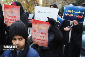 تجمع اعتراضی به نقض حقوق مردم ایران توسط سوئد و دیگر کشورهای اروپایی مقابل سفارت سوئد در تهران عصر امروز دوشنبه ۲۱ آذر ۱۴۰۱ با حضور اقشار مختلف مردم و خانواده حمید نوری برگزار شد.