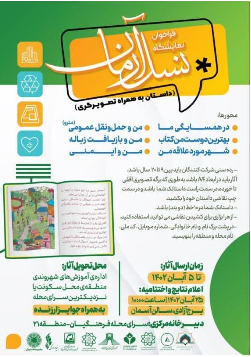 به گزارش خبرگزاری صدا و سیما، فراخوان نمایشگاه نسل آرمان در محور‌هایی همچون همسایگی ما، من و ایمنی و شهر مورد علاقه من در حوزه داستان به همراه تصویرگری ویژه شهر تهران و در رده سنی ۹ تا ۲۰ سال علاقه‌مند به داستانک و تصویرگری اعلام شد.
