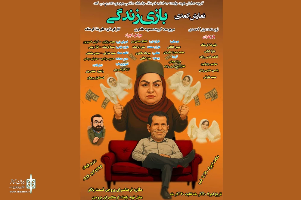 به گزارش خبرگزاری صدا و سیما مرکز چهارمحال و بختیاری، نمایش کمدی «بازی زندگی» به نویسندگی میترا احمدی و کارگردانی علیرضا فرهنگ از دهم تا بیستم آذرماه ۱۴۰۴ هر شب ساعت ۱۹:۳۰ در پلاتوی شماره یک فرهنگسرای بروجن روی صحنه میرود.